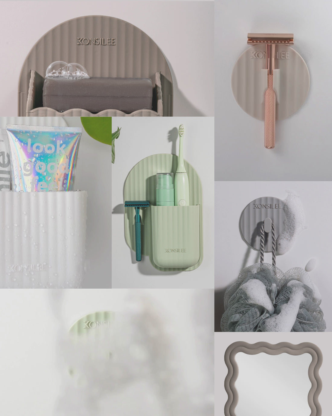 These are so easy to use, peel off the backing, and place where you want. I used the two of the pictured items in our hybrid caravan shower. They work so well I've ordered 2 more to place below the one on the left. We've used some of the shower hooks to hang tea towels and hand towels. We also have the toothpaste / toothbrush and additional toothbrush / razor holders. Just need to decide where we will place them. Love the product, the rest is aesthetic: Where to put them for best effect?